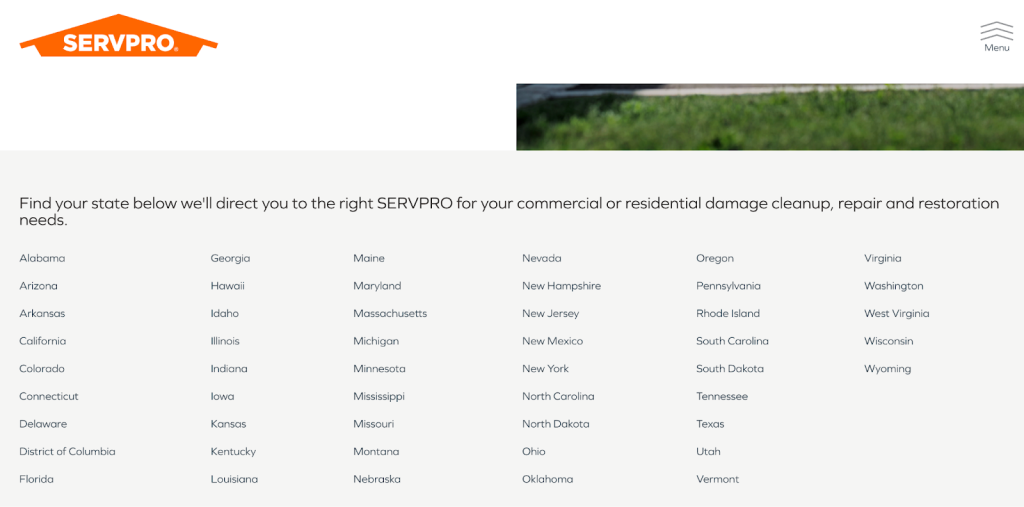 Take Servpro, one of the largest commercial damage cleanup franchises. They have dedicated landing pages for each service location: