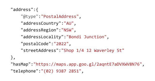 It’s a code you add to your pages to show web crawlers what each page is about. It can be a location and contact details code like this from Backlinko: