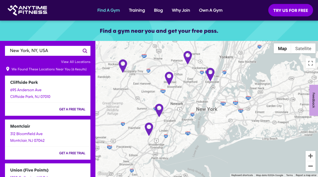 We’ve already mentioned the importance of clear navigation and adding dedicated location pages to your franchise site. However, you can make it even easier for users to find nearby franchises by using a franchise locator feature.